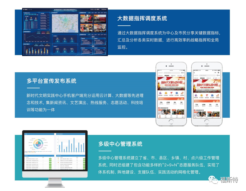 福斯特新時代文明實踐中心云平臺集服務、管理、發(fā)布、展示于一體,推動平臺、終端、和渠道互聯(lián)互通,為基層黨的理論宣講、文化建設和為民服務提質增效,為志愿者、受益者與管理者提供了一個安全、快捷、便利、智慧化的新時代文明實踐管理工具